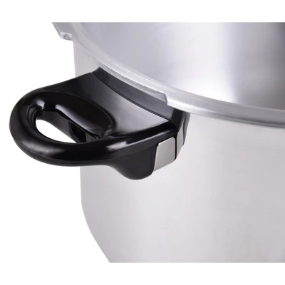 The smart choice for preparing today’s lower calorie foods. Cooks three to ten times faster than ordinary cooking methods! Saves time, energy, and money. Pressure cooking preserves flavors and nutrients, and even tenderizes lean cuts of meat. Strong, heavy-gauge aluminum for quick, even heating, easy cleaning, and long life. Works on electric, smooth-top, and gas ranges.