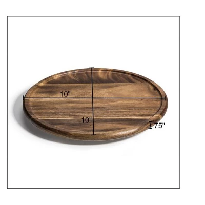 Kalmar Home’s 10″ Round Acacia Wood Lazy Susan – a beautiful and functional addition for any dining table, countertop or cabinet.Handcrafted from high-quality acacia wood, renowned for its durability and stunning grain patterns, it is also naturally resistant to stains, odors, and moisture. Equipped with a sturdy and smooth 360-degree rotating mechanism, our Lazy Susan ensures effortless rotation without compromising stability.Measuring 10 inches in diameter, our Lazy Susan is compact yet spacious enough to hold a variety of condiments, spices, or serving dishes as well as conveniently fitting in most kitchen cabinets.Each Lazy Susan is carefully crafted and finished to enhance the natural grain patterns, making it a truly unique and eye-catching piece.The smooth finish of the wood makes it easy to clean and maintain, ensuring its long-lasting beauty.To preserve its beauty, we recommend hand-washing with mild soap and drying it thoroughly.