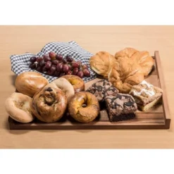 Kalmar Home’s 13″ Round Acacia Wood Serving and Charcuterie Tray – a stylish and functional way to serve and showcase culinary creations, display decorative items or use as a stunning centerpiece on a table or kitchen island.The versatile design, featuring convenient handles on each side and ample space for arranging and presenting, creates the perfect blend of functionality and elegance.The solid acacia wood construction ensures that this extremely durable tray is sturdy and built to last. Handcrafted from high-quality acacia wood, renowned for its durability and stunning grain patterns, it is also naturally resistant to stains, odors, and moisture. The rich, warm tones and distinctive grains of acacia wood create a stunning piece to compliment any dĂ©cor style.It is a perfect gift for food enthusiasts, newlyweds, or anyone who appreciates the art of dining.To preserve its beauty, we recommend hand-washing with mild soap and drying it thoroughly and to preserve the wood’s natural luster, occasional oiling with food-grade mineral oil is recommended.