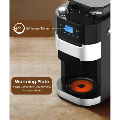 - PROGRAMMABLE TIMER AND KEEP TEMP – This automatic coffee machine’s 12-hour programmable timer lets you set it the night before for perfect mornings,and Keep your coffee at the ideal temperature for up to 2 hours—our keep-warm function preserves flavor integrity so you can savor every sip.