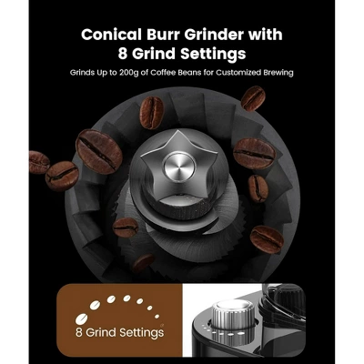 - ACCEPTS WHOLE BEANS OR COFFEE GROUNDS – ?Features an 8-level grind adjustment system to perfectly match any coffee bean, allowing you to brew with either pre-ground coffee or freshly ground beans—explore a spectrum of coffee flavors at home with ease.