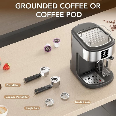 - 【Multi-Experience Coffee Machine】With our 3-in-1 espresso machine, you can enjoy rich espresso, frothy cappuccino, or smooth latte effortlessly. You can enjoy the freedom to customize single/double shots and effortlessly switching between grounds and capsules with 2 portafilters with our espresso machine. Transform your kitchen into a coffee playground!