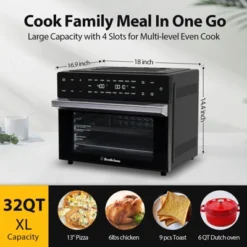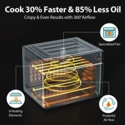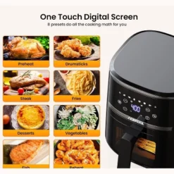 1500W Digital Air Fryer Toaster Oven Combo 5 Quart With 8 Cooking Presets & Visible Cooking Window