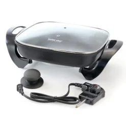 Brentwood 13in Non-Stick Flat Bottom Electric Wok Skillet With Vented Glass Lid In Black