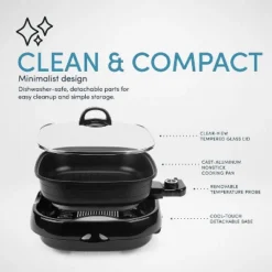 Aroma Housewares ASP-218B Grillet 4Qt. 3-in-1 Cool-Touch Electric Indoor Grill Portable Black
