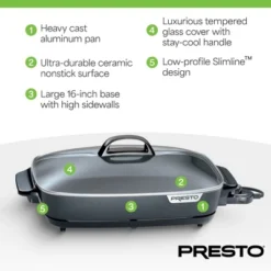 Presto 16″ Slimline Electric Skillet, Nonstick Kitchen Appliance With Tempered Glass Lid