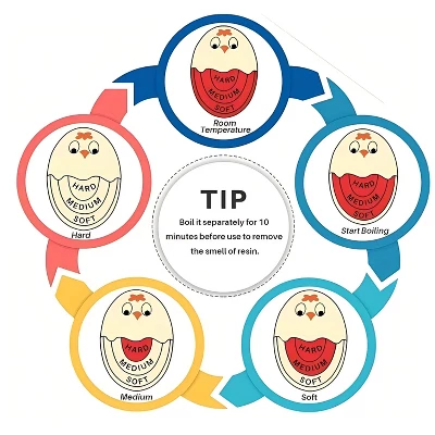 - Color-Changing Indicator – Easily monitors egg doneness from soft to hard.