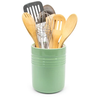 Your utensils are sick and tired of drowning in jammed drawers. Give them a little wiggle room to breathe. In this chic, free-standing utensil crock, all of your labels, spoons, and whisks are just a grab away. Add a pop of color to your kitchen countertop. Crafted from ceramic in a variety of four bright.