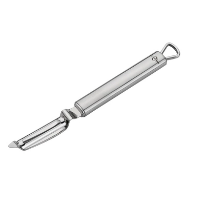 The Kuchenprofi Parma Swivel Peeler simplifies the task of peeling fruits and vegetables. At 8.75 inches, it boasts a flexible 18/10 stainless steel blade that contours to your produce, ensuring efficient and effortless peeling.