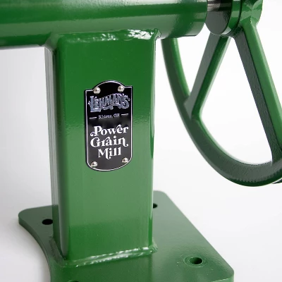 Green Power Grain Mill: Grinds Any Dry Grain Turn grain to pastry flour in one pass. The Green Power Grain Mill grinds any free flowing, dry grain, including wheat, corn, rye, rice, quinoa and small beans. Stainless steel grinding burrs are electrolytic polished, which gives the burrs a smooth, ultra-clean grinding surface. Grinding burrs individually machined from hardened stainless steel that is electrolytic polished. Unbreakable steel body. Sealed ball bearings for smooth operation. Extended handle for added leverage. Fast adjust with easy grip adjustment knob. Wipe clean, sanitary powder coat finish. 5″ diameter for high output, with removable dust cover so all the flour lands in your bowl. Easy disassembly for cleaning. Extra large hopper holds 6 cups – grind a whole batch without stopping!. Iron 12″ V-belt flywheel pulley – provides momentum for easier hand grinding, can be motorized. Four pre-drilled holes in base of the mill allow for easy bolting. Dimensions: 14″H, 12″ flywheel. Why Grind Your Own Grain? Grinding your own grain is more than just becoming self-sufficient. When you make your own flour, you gain control of what goes into your food. Plus, you’ll love the taste of freshly ground flour in homemade bread and baked goods!