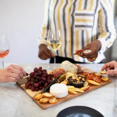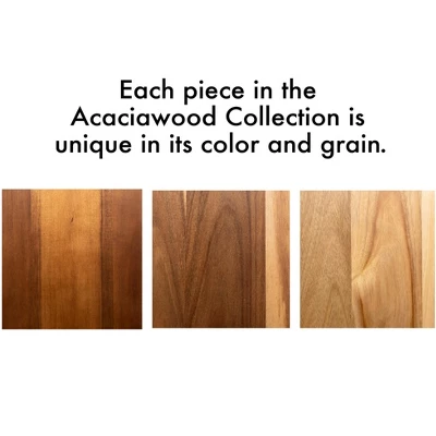 - Set includes 16 x 10.5-inch serving board, 9.9-inch tall glass dome, two 7-ounce ceramic dipping bowls, and stainless steel cheese knife – each piece in the Acaciawood Collection is unique in its color and grain