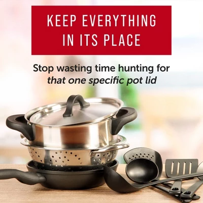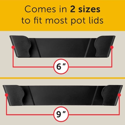 - Each set includes both 6” and 9” holders, ensuring both large and small pot lids in your kitchen have a convenient and organized place to stay when not in use