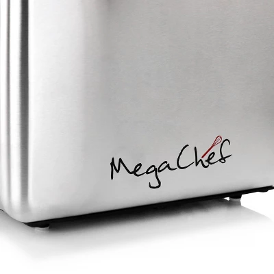 Create a delicious breakfast with the MegaChef 4 Slice Stainless Steel Extra Wide Slot Toaster. Toast, heat and defrost all in one machine with one touch settings. Dual control panels are twice as fast, allowing you to create a breakfast for the entire family in a matter of minutes. 1.5 Inch wide slots are ideal for Waffles, Bagels, English Muffins and Texas Toast, breakfast jut got easier! Features 9 adjustable preset browning settings perfect for all your different breakfast creations. Brushed stainless steel housing is easy to clean and care for and matches every kitchen decor. LED screen shows how much time is left on your selection. Includes convenient slide out crumb tray allowing for quick and easy cleaning.