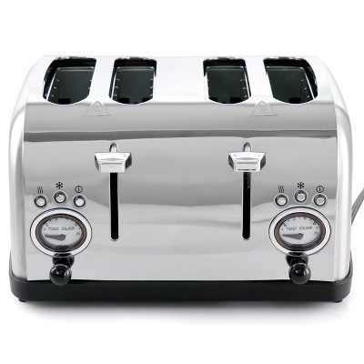 Create a delicious breakfast with the MegaChef 4 Slice Stainless Steel Extra Wide Slot Toaster. Toast and defrost all in one machine with one touch settings. Dual control panels are twice as fast, allowing you to create a breakfast for the entire family in a matter of minutes. 1.5 Inch wide slots are ideal for Waffles, Bagels, English Muffins and Texas Toast, breakfast jut got easier!
