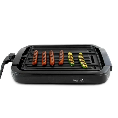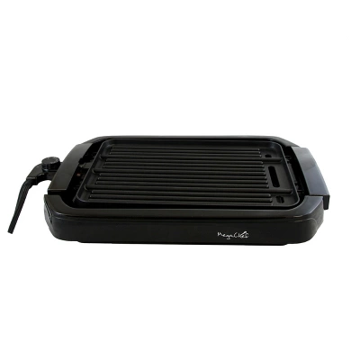 The MegaChef Reversible Indoor Grill and Griddle is designed with a non-stick coating so that you can easily prepare delicious and appetizing meals with less oil than traditional cooking methods. MegaChef understands that no matter the weather outside, friends and family should always be welcome to enjoy juicy grilled meats and vegetables. Rain or Shine, this grill will be your ticket to those perfect grill lines everyone loves to see! The versatility of a reversible cooking surface means you can grill your meats and veggies, flip the grills cooking surface over and use it as a griddle for eggs, pancakes and much, much more! The non stick surface also means that your clean up is a breeze! Simply and easily wipe down any remaining foods with a moist dish cloth and you’re done! This grill is designed to be light weight and easily portable. You can easily take this reversible grill to your next vacation or getaway! The removable, adjustable temperature control accurately sets cooking temperature to achieve desired results when cooking a variety of foods. This grill offers a 15″ by 11″ cooking surface on both sides of the cooking surface panel. Which means you are getting both a 15″ Griddle and a 15″ Grill all in one!