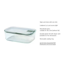 - The storage box made of borosilicate glass can go in the oven, up to maximum 500°F