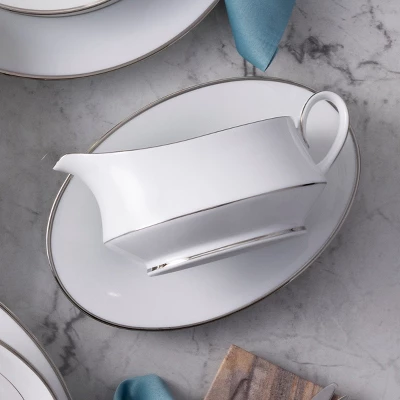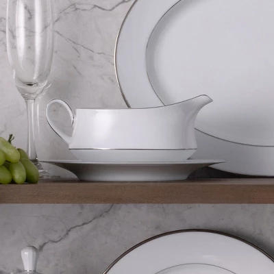 Spectrum is a very simple white porcelain body with a narrow, smooth band of platinum. Crafted on white porcelain, this pattern is a perfect match to almost any decor style or aesthetic. Spectrum offers traditional place setting components, additional items for individual service, and serving pieces. Spectrum is suitable for daily use and is dishwasher safe.