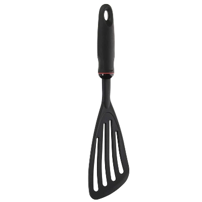 Perfect for nonstick cookware and stir-frying.The handle has a patented shape, ergonomically designed to fit perfectly for right and left-hand use. Grip-EZ rubber allows for a stronger grip, preventing cramping and hand fatigue.High heat resistant to 410°F / 210°C. Measures 12 inches long overall by 3.25 inches at the widest. Dishwasher safe.