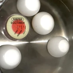 The perfect soft, medium, or hard-boiled eggs, every time!Heat sensitive egg timer changes color as the eggs cook, sensing when eggs reach their desired softness or hardness!Simply place the timer in the pan with eggs and water and watch it change color as you cook. When the color change reaches your desired spot on the scale of soft to hard-boiled, simply remove the eggs and enjoy!Easy-to-use and easy-to-read line markers are visible throughout the cooking process.Use with one egg, or a dozen! The egg timer is able to sense and adjust whether boiling one egg or a dozen.Helpful tip: When done, remove the pan immediately from the heat and rinse eggs in cold water, producing tender, not rubbery eggs and minimizing cracking.Hand washing is recommended. Measures: 2″/5cm.The perfect soft, medium or hard boiled eggs, every time!Heat sensitive egg timer changes color as the eggs cook, sensing when eggs reach their desired softness or hardness!Simply place the timer in the pan with eggs and water and watch it change color as you cook. When the color change reaches your desired spot on the scale of soft to hard boiled simply remove the eggs and enjoy!Easy to use and easy to read line markers visible throughout the cooking process.Use with one egg, or a dozen! The egg timer is able to sense and adjust whether boiling one egg or a dozen.