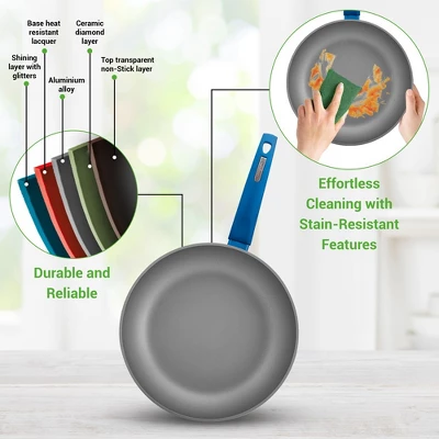 The NutriChef 12-Piece Kitchen Cookware Set offers a stylish and practical solution for all your cooking needs. This set features a sleek light gray interior and blue exterior, making it a beautiful addition to any kitchen. Each piece is equipped with a durable non-stick coating, ensuring food slides off easily and cleanup is effortless. With pots, pans, and essential kitchen tools included, this set covers everything from frying to simmering. Designed for performance and safety, the cookware is compatible with gas, electric, ceramic, and induction cooktops, and it’s PFOA and PFOS free, making it an environmentally friendly choice. Whether you’re an experienced chef or just starting, this set will elevate your culinary skills.