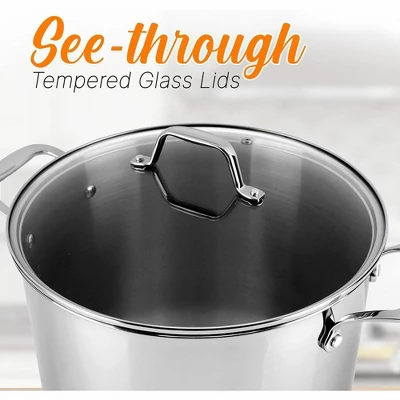 - HEAT UP FAST AND QUICKLY: Our cookware stockpot lid is made of tempered class and warms up rapidly to a maximum temperature of 500° Fahrenheit (260° Celsius). The lid will aid in the preservation of minerals and natural taste in meals