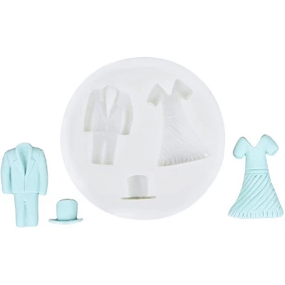 - 1 mold impressed with 3 different shapes: gown, suit and top hat