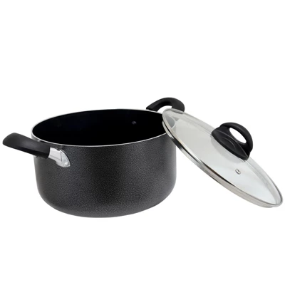 The Oster Clairborne 6 Quart Aluminum Hammered Tone Dutch Oven with Lid will create a sleek and dynamic look for your kitchen. This beautiful and long-lasting kitchen tool will allow you to cook and bake wonderful meals for family or guests, making it ideal for many dinner gatherings and events to come. Its nonstick interior makes cooking and cleaning easy while also allowing you to make healthier dishes and skip using any oils or fats. Never let heat escape from your culinary creations again with the help of the matching vented glass lid allowing for easy meal monitoring. The Clairborne will add a touch of elegance to your everyday meal prep routine.Includes: 1 Gray 6 Quart Dutch Oven with LidDutch Oven measures: 14.5″ x 9.5″ x 6″ – 6 qt fluid Capacity The perfect companion for all your culinary needs!