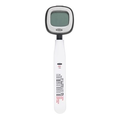 The Chef’s Precision line of thermometers offers professional-grade results with at-home ease. The Instant Read Thermometer provides quick, accurate measurements in large, easy to read numbers (°F and °C) for cooked meat by simply inserting the probe. The pivoting head allows reading temperature from any angle. The probe cover has chef- and USDA-recommended temperatures for convenience. Temperature range 30 to 150°C (-22 to 302°F).