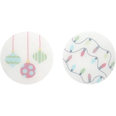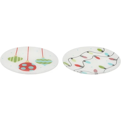 - IN-HOUSE DESIGN: Designed with the holiday season in mind, this plate set features two distinct yet complementary designs. One plate is adorned with beautifully illustrated hanging ornaments in vibrant shades of green and red, adding a cheerful yet classic Christmas look. The other plate showcases a whimsical pattern of colorful string lights, creating a fun and playful holiday vibe. Both designs are further elevated with delicate metallic gold accents around the rim, giving these plates a refined and festive appeal that will impress guests during your holiday dinners and gatherings.