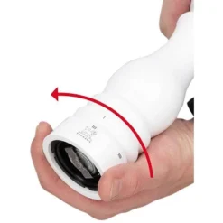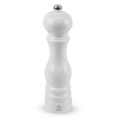 Close your eyes and picture a pepper mill, and the iconic shape of Peugeot�s Paris mill will surely come to mind. Replicated often but never duplicated, the Paris collection has become a world-wide favorite from celebrity chefs to home cooks. Made in France, Paris comes with a curved shape for an ergonomic grip and an elegant presentation. Paris u�Select is equipped with a six-stage grind adjustment, allowing you to control the texture of your grind by twisting the ring at the base of the mill so you always get the output you�re looking for.s any recipe, a fine grind will pack more of a punch on heat, and a coarse grind lets even more of the peppercorn�s aromas escape. Salt can instantly increase the depth of flavor of your dishes and can also add a sparkle when coarsely ground on top right before serving. Welcome on icon of design into your kitchen and season your dishes for years to come with Peugeot.