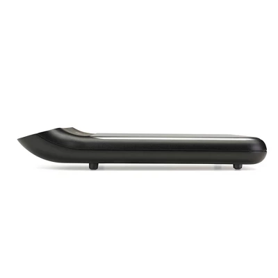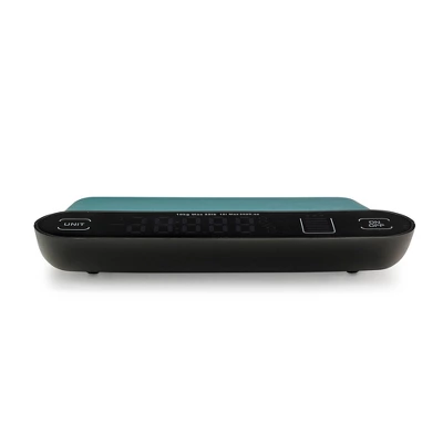 The Polder Aqua-Dry Digital Kitchen Scale is the ideal tool for precise food and ingredient measurement in the kitchen. With a 22 lb (10 kg) capacity, it weighs both liquid and dry ingredients, making it versatile for any recipe. The stainless steel platform and food-grade silicone mat ensure easy cleaning and prevent cross-contamination. The heads-up backlit digital display features large numbers for easy reading, while the Add & Weigh TARE function allows for accurate additive measurements without needing to remove ingredients. This scale also includes a low battery indicator, load indicator for remaining capacity, and a removable, dishwasher-safe silicone mat. With its easy-to-read digital readout, the Polder Aqua-Dry Digital Kitchen Scale measures in pounds (lb), grams (g), fluid ounces (fl oz), or milliliters (mL) for all your cooking and baking needs.