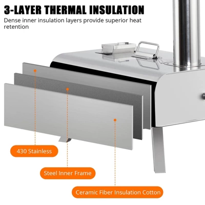 - 【Built to Last with Premium Stainless Steel】 Crafted from corrosion-resistant SUS430 stainless steel, this wood-fired pizza oven ensures long-lasting durability and superior heat distribution for safe, consistent outdoor cooking—perfect for harsh weather or frequent camping use.