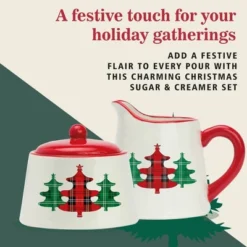 Amici Home Christmas Tree Sugar & Creamer Set – 8oz Ceramic Pitcher With Drip-Free Spout & Bowl With Lid – Vintage Sugar & Creamer Set