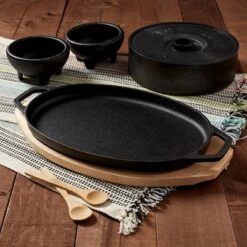 Infuse 8pc Fajita Set: Cast Iron Cookware, Gas & Induction Compatible, Includes Storage Containers & Spoon