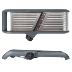 Prepworks Folding Mandoline: 4-Blade Vegetable & Cucumber Slicer, Dishwasher-Safe, Green/Gray