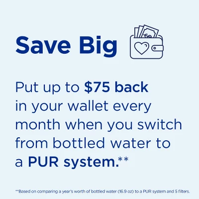 - Saves you up to $75 a month and reduces plastic waste versus bottled water. **