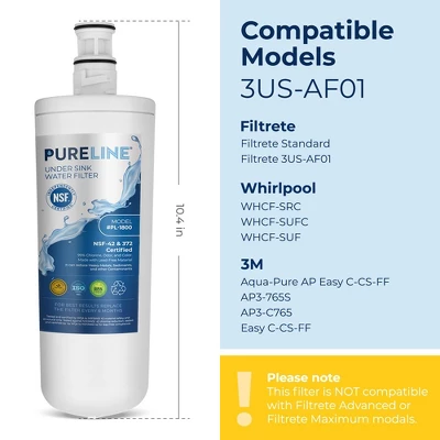 - Compatible with: Filtrete 3US-AF01 and 3US-AS01, Whirlpool WHCF-SRC, WHCF-SUFC, WHCF-SUF, 3M Aqua-Pure AP Easy C-CS-FF, AP3-765S, AP3-C765 under sink filters