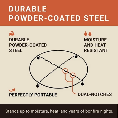 - Made from powder-coated steel, this trivet stands up to wear and tear and the heat of a burning fire with ease, making it a lasting piece of camping equipment