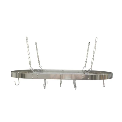 - Includes: 1 Oval Rack Frame, 1 Grid Shelf, 4 Lengths of Chain, 4 Ceiling Hooks, 4 Rack Hooks, and 12 Pot Hooks