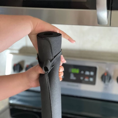 Protect your fragile smooth top range from scratches, abrasions, and other damage using the Range Kleen StoveShield™ Smooth Top Range Cover. The StoveShield™ cover is crafted from natural rubber and polyester, which provides a cushion for your smooth top range and conceals unsightly imperfections on your smooth top when the appliance isn’t in use. With the cover in place, you can safely increase your kitchen workspace while protecting your appliance top from scratches, abrasions, and other damage. The neutral black color complements most kitchens, and the generous size covers most smooth-top ranges. Between uses, the cover can be rolled together and secured with the attached fabric loops or folded for efficient storage, and the attached fabric loops double as a hanging hook for convenient storage.