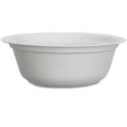 These 16 oz. white round bowls, made from sustainable sugarcane bagasse, are a durable and eco-friendly alternative to traditional paper bowls. Ideal for hot or cold foods, these soak-proof bowls are refrigerator, freezer, and microwave-safe, making them suitable for takeout, catering, and various food service applications. No PFAS added. BPI certified compostable. Available in a case of 400 (8 packs of 50). Lids sold separately.