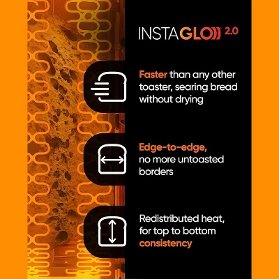 - Updated design and improved InstaGLO 2.0 Heating Technology makes perfect toast easier andmore fun to make than ever before.