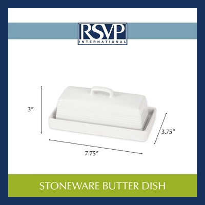 Introducing our stylish butter dish, measuring 7.75″ long, 3.75″ wide, and 3″ tall. Perfect for your countertop or table, it features a white glazed finish that complements various decors. The practical design includes a removable lid, allowing you to keep your butter safely contained at room temperature. Crafted from stoneware, both the dish and lid are sturdy and long-lasting. For maintenance, hand washing is recommended to preserve the quality of this elegant butter dish. Elevate your kitchen with this functional and aesthetically pleasing addition.