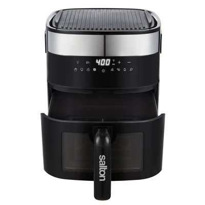 Unleash your inner chef with the Salton Flip and Cook 3-in-1 5.5 L Air Fryer, Grill, & Dehydrator, a versatile kitchen powerhouse designed to elevate your cooking experience. This innovative appliance offers precise and versatile cooking with a unique 180° flip feature, allowing you to fry and grill like a pro with ease. Stay in control of your culinary creations with the built-in viewing window. Easily check on the progress of your food without interrupting the cooking process, ensuring perfect results every time.