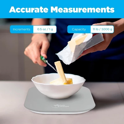 - ACCURATE MEASUREMENTS: Weigh up to 5 kg/11 lbs with the Smart Weigh Kitchen Food Scale. The Digital food scale is designed and crafted with quality in mind using the highest precision sensors to ensure accurate instant weight readings every single time. Measure food, small items, chemicals, grains ,ingredients,with confidence for better cooking, baking, dieting, meal prep and portion control. The scale can also be used to weigh parcels, envelopes, mail, postage and letters.