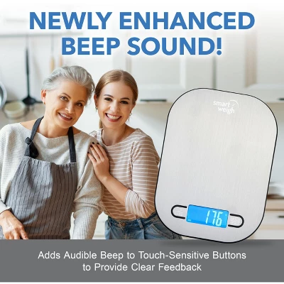 Smart Weigh Digital Food Scale Grams and Ounces – Sound Beep Feedback for Meal Prep Scale for Calorie Counting Cooking, Weighing Professional – Essential Kitchen Scale, Kitchen Necessity – Stainless