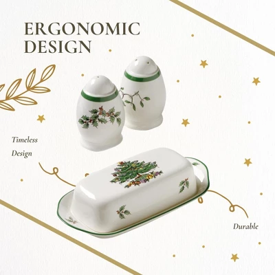 - Classic Holiday Design: The butter dish and salt and pepper shakers feature a complete set with holly and mistletoe details, creating a nostalgic and festive touch for your holiday table.