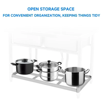 - Free-standing Design: The commercial stainless steel sink with legs can be assembled with ease in just 10 minutes; The single-bowl sink is free-standing, providing flexibility in placement and installation.