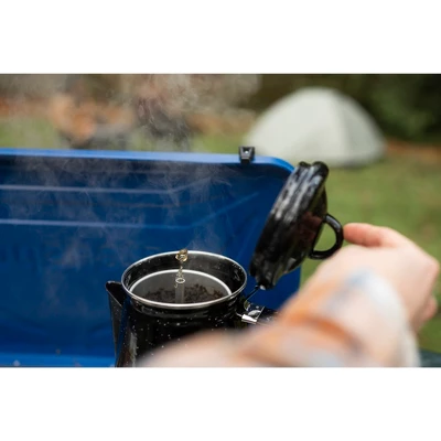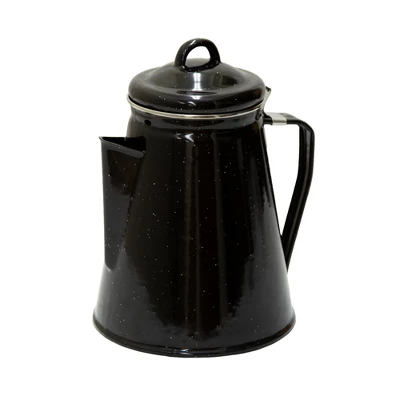 There’s nothing like waking up to the smell (and that distinctive, perky sound!) of a percolator heating on the fire! This Stansport® Enamel Percolator Coffee Pot is the perfect companion for outdoor adventures and cozy mornings at the cabin. This set features a baked enamel finish, ensuring long-lasting durability and resistance to wear and tear. The coffee pot is accented with a brilliant stainless-steel rim, adding a touch of elegance to their robust design. This percolator comes equipped with a stem and basket, allowing you to brew up to 8 cups of your favorite coffee with ease. The practical design of this coffee pot includes a pour spout, a side handle for a comfortable grip, and a hinge-attached lid for convenience. This percolator is an ideal accessory for sharing your morning brew with family and friends, and is an essential for the campsite, cabin, kitchen, hutting expeditions, tailgating, and more!