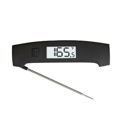 For a fast, stable temperature reading in less than 6 seconds, turn to the Taylor Ultra-Fast Thermocouple Thermometer. This kitchen cooking thermometer is professional-grade, allowing you to feel confident that you are serving your best recipes. The folding probe rotates 180 degrees for accessible motion. Probe narrows at the tip to keep food maintain precious juices. 4.6” length stem is 3mm thin with a 1.5mm FDA step-down tip. Thermometer can be calibrated and features HOLD and MIN/MAX memory. Power the thermometer off by simply closing the folding probe. IP67 Waterproof.